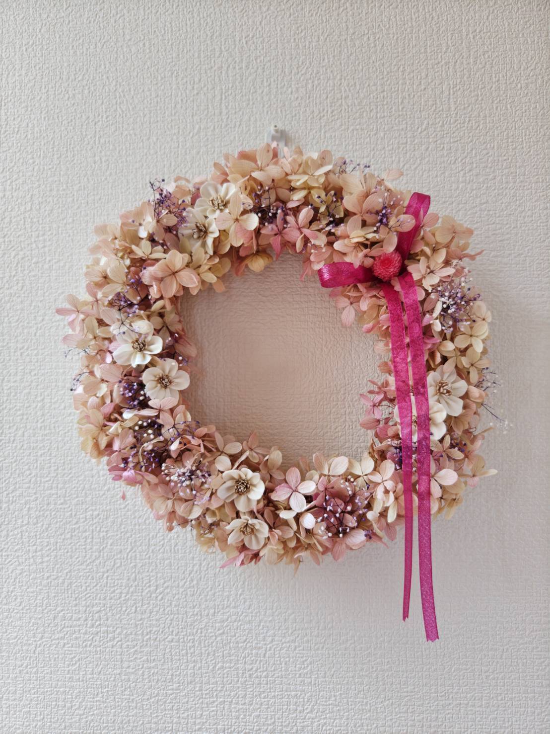 ピンクライムの紫陽花リース