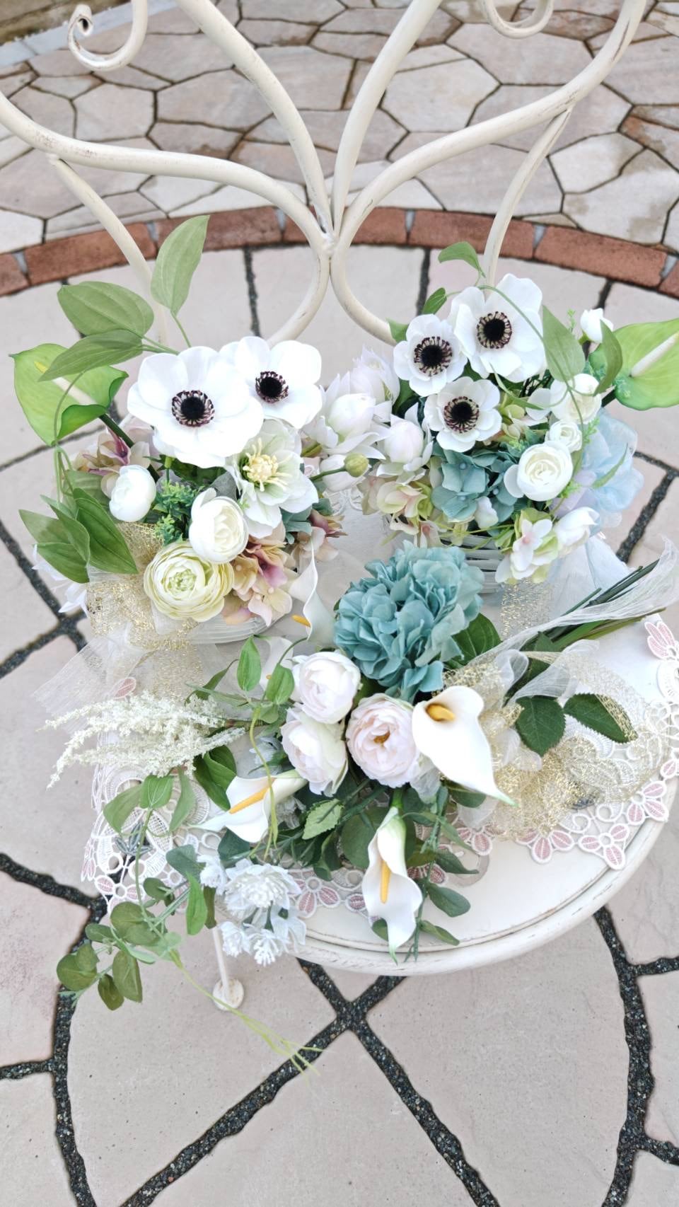 小さな小さなcotton flower可愛い… レースフラワーは雪❄のよう… このふたつで雪の降る頃まで お家の玄関でWeIcomして欲しいです。 アーティフィシャルフラワーを使用しています。