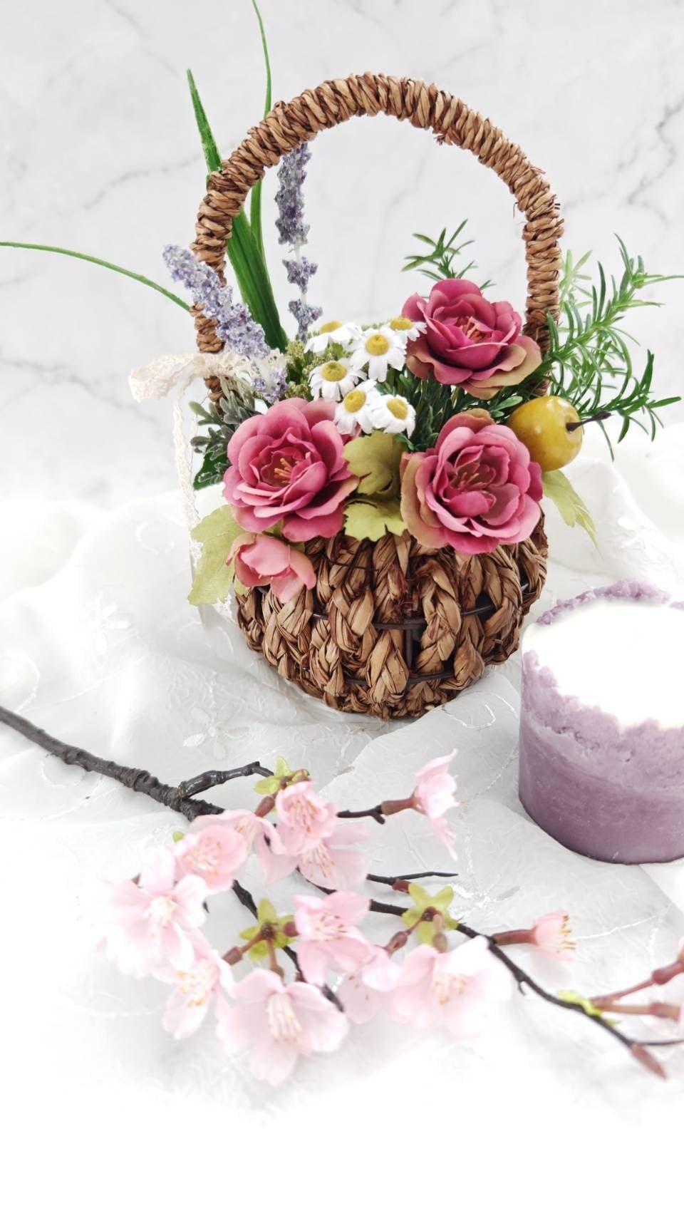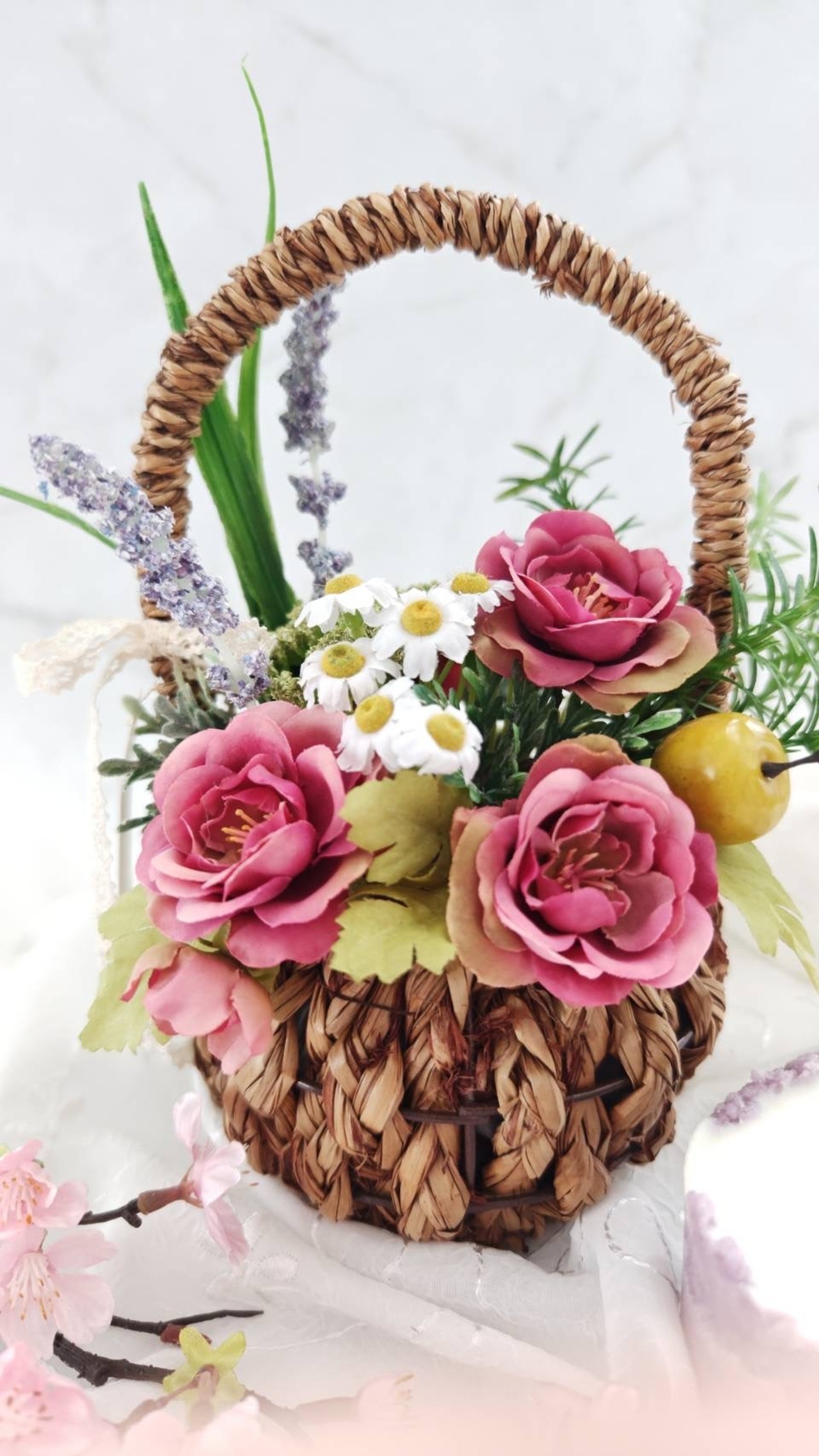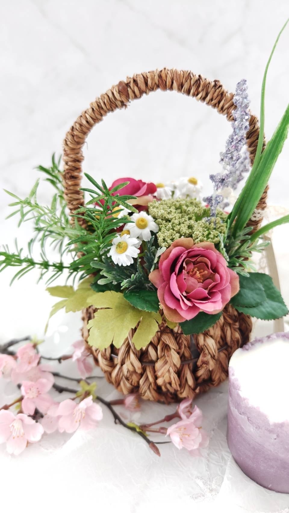 柔らかな春の光に包まれたような春薔薇のナチュラルアレンジ。